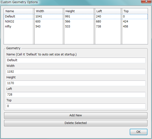 以前は「Custom Geometry」というアドオンを使ってましたが、Firefox3.5になった際、使えなくなったため、ブックマークレットで代替できるとわかってから、もっぱらこちらを使うようになりました。